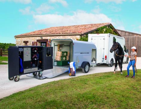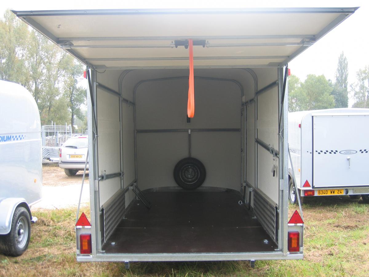Equipements de série : frein à inertie, roue jockey, béquille de stabilisation, lumière intérieure, antivol dans la tête d’attelage, 2 portes arrière.