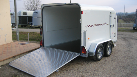 Remorque fourgon, monocoque polyester, tractable sans permis BE*. L’OLYMPIUM se décline en 3 modèles (260, 300 et 360). Les utilisateurs l’apprécient pour sa faible garde au sol et son volume utile confortable et facilement aménageable.