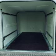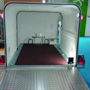 Equipements de série : frein à inertie, roue jockey, béquille de stabilisation, lumière intérieure, antivol dans la tête d’attelage, 2 portes arrière.