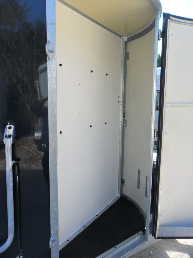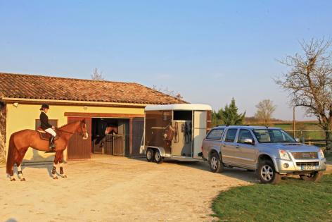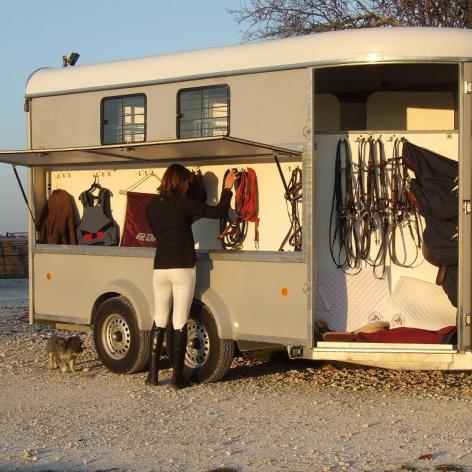 | Baie coulissante pour une aération optimisée | Ouverture FAUTRAS : 2 portes arrière qui canalisent les chevaux pour un embarquement facile. L'ouverture sans pont évite de se baisser et offre la possibilité de reculer devant le box | Grande sellerie avant : Un espace de rangement spacieux pour le matériel |