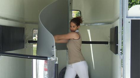 √ Ouverture FAUTRAS : 2 portes arrière qui canalisent les chevaux avec Plancher ProgressifTM (Brevet Fautras) pour un embarquement facile. L'ouverture sans pont évite de se baisser et offre la possibilité de reculer devant le box.