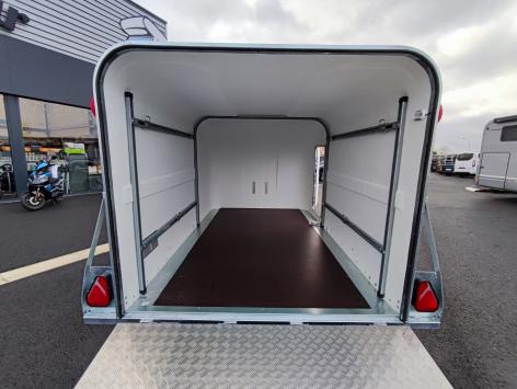 L'OLYMPIUM 300, remorque fourgon tout en polyester pour un grand volume et un faible encombrement.