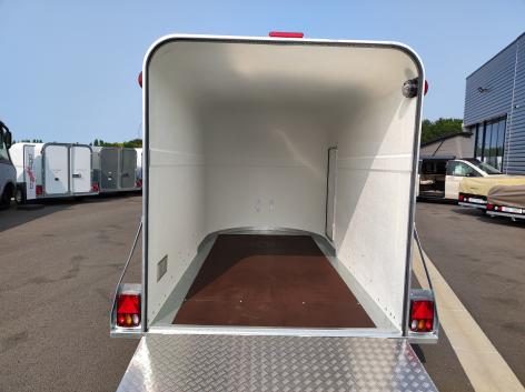 La remorque fourgon MAXIPODIUM est utilisée principalement pour le transport de motos, voitures, quads, jets ski, etc. est également aménageable en remorque magasin.