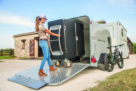 La remorque Olympium TACK est pensée pour les sports équestres. Grâce à sa hauteur intérieure et à son treuil, elle est parfaite pour le transport d’une malle et de tout le matériel utile sur vos concours.
